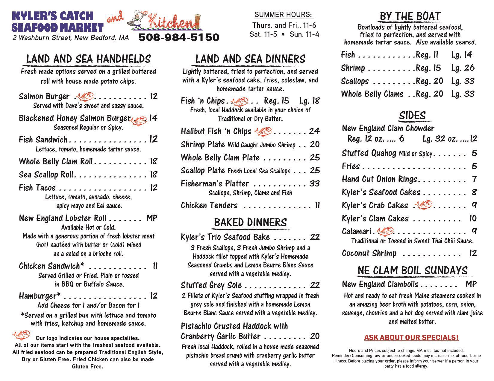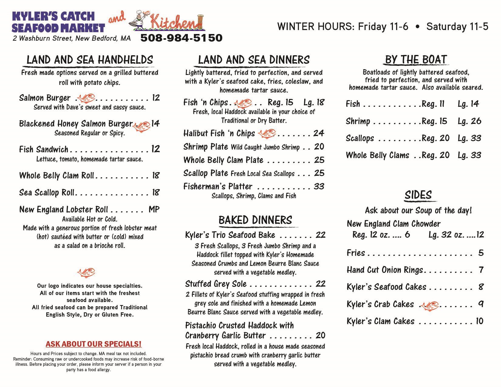 The information contained in this website is for general information purposes only. The information is provided by Kyler Seafood and while we endeavor to keep the information up to date and correct, we make no representations or warranties of any kind, express or implied, about the completeness, accuracy, reliability, suitability or availability with respect to the website or the information, products, services, or related graphics contained on the website for any purpose. Any reliance you place on such information is therefore strictly at your own risk.
