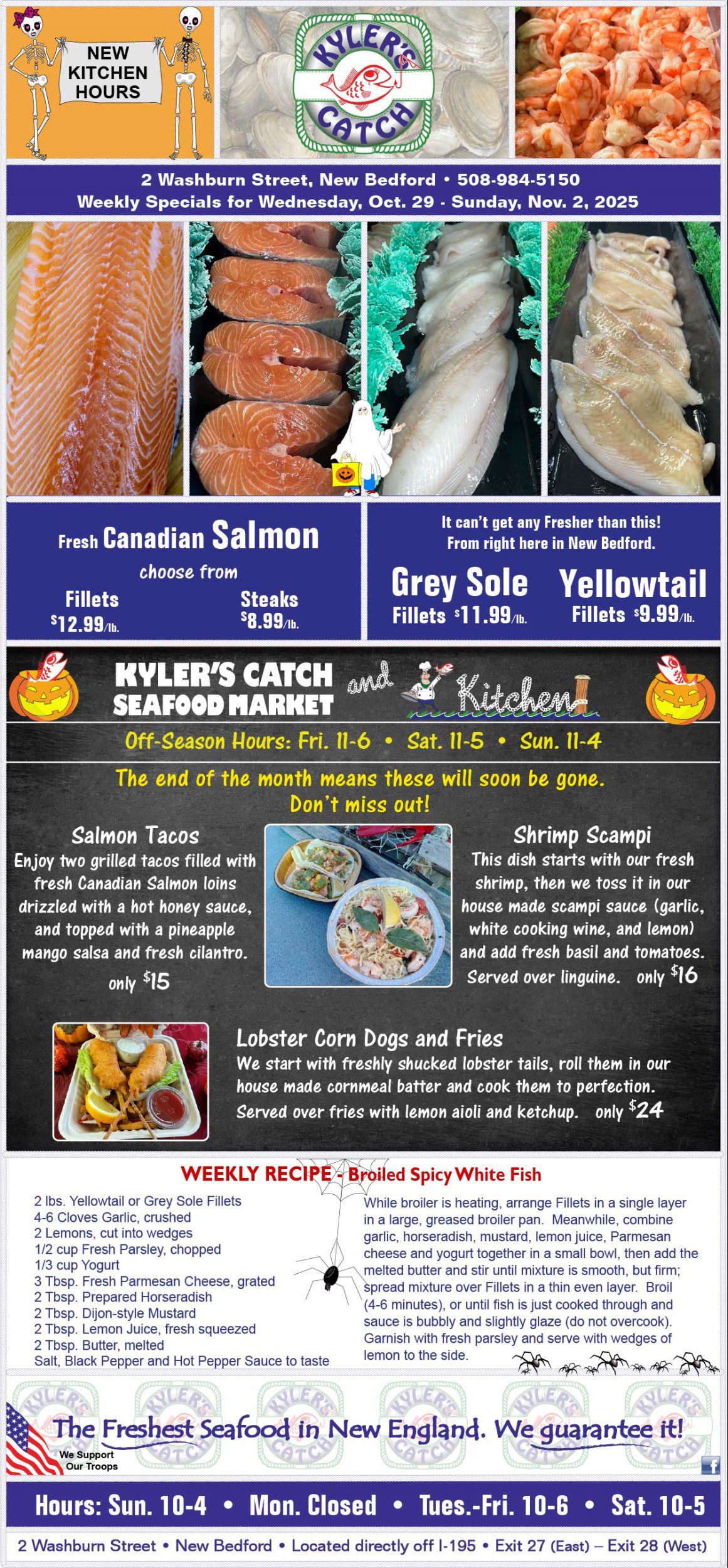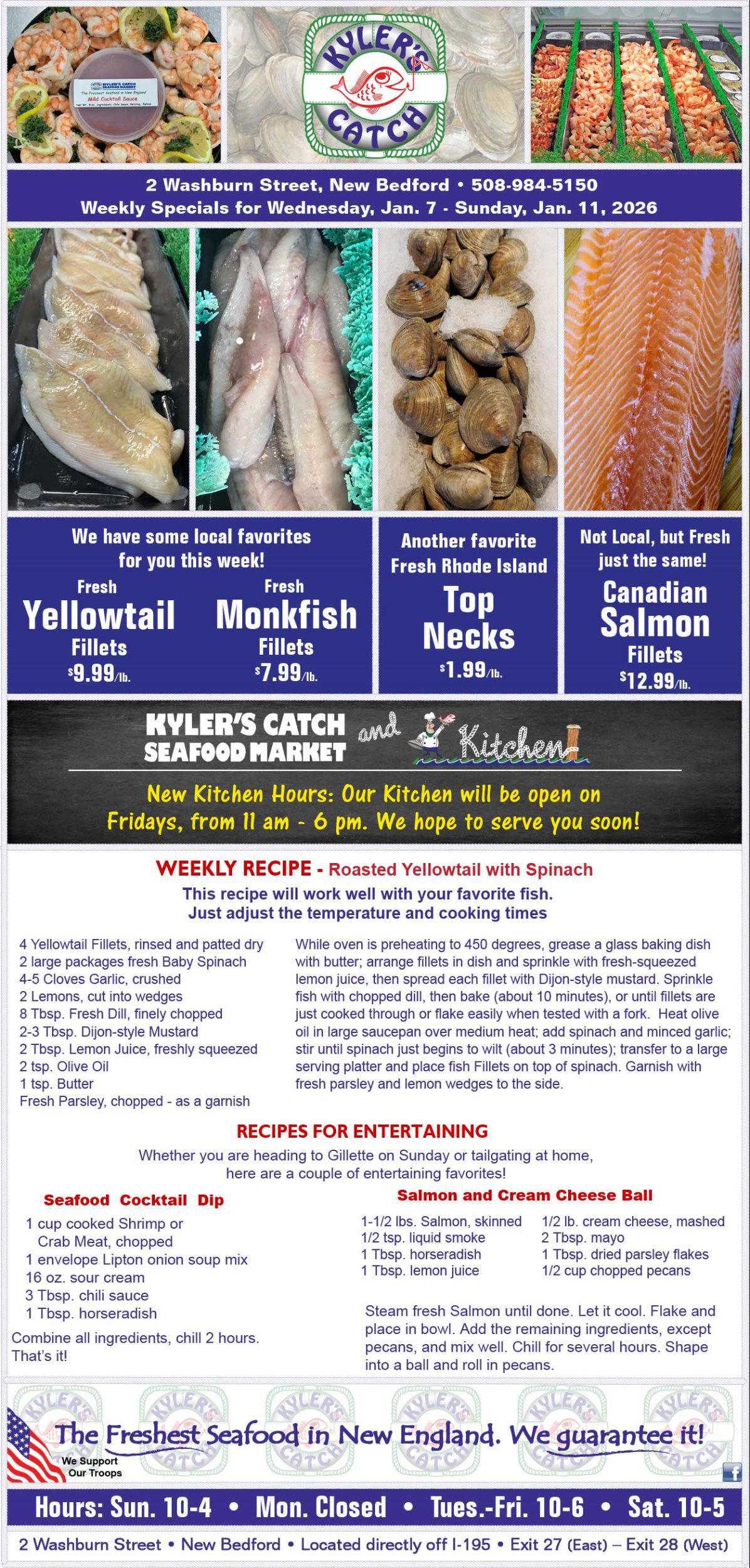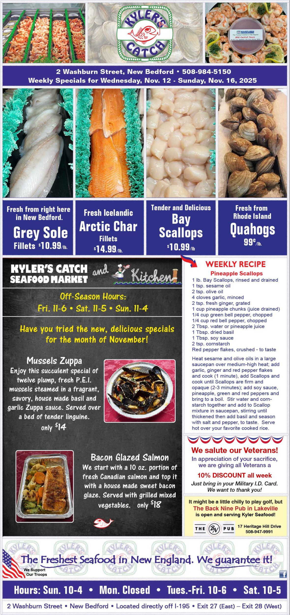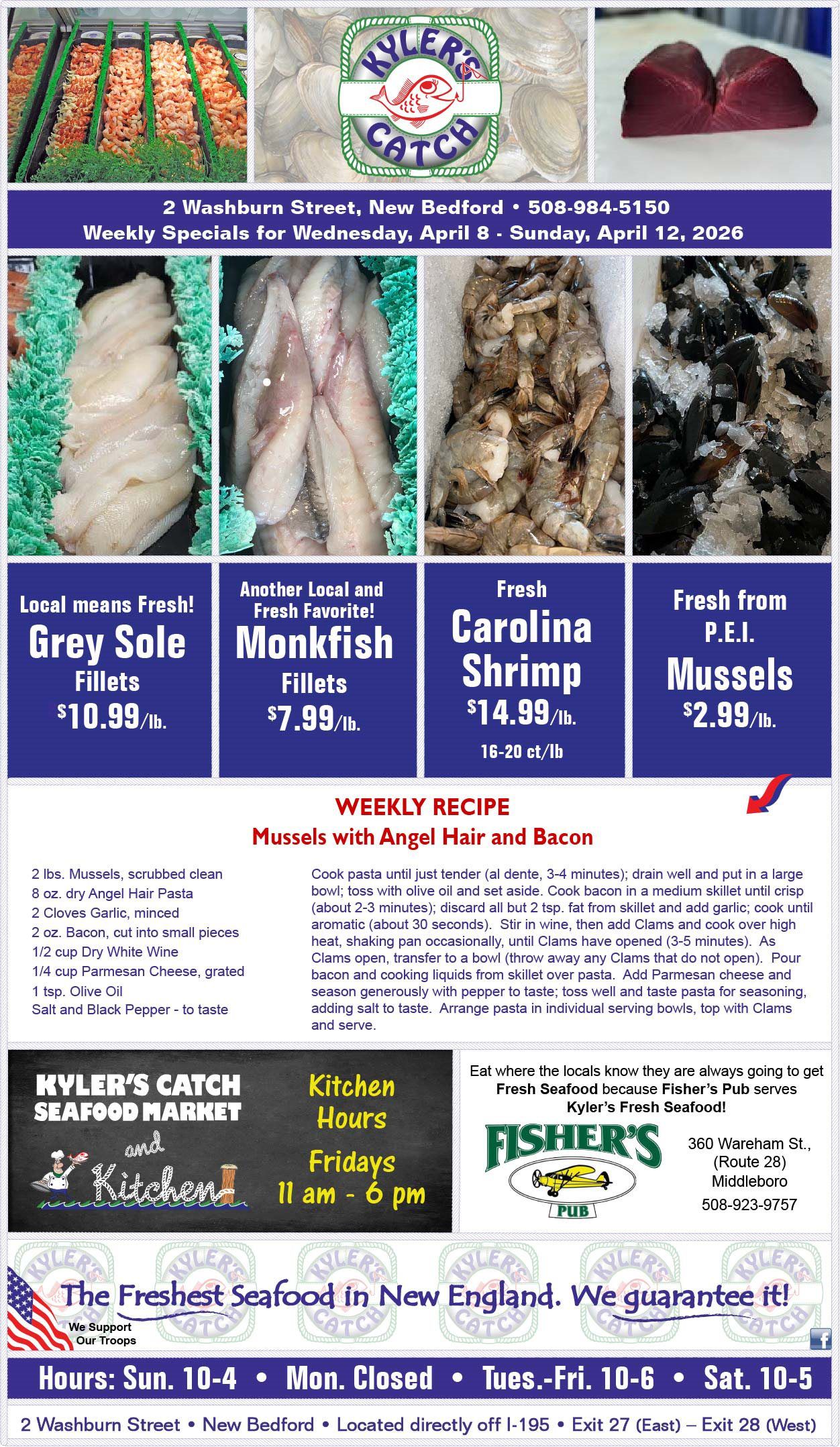 The information contained in this website is for general information purposes only. The information is provided by Kyler Seafood and while we endeavor to keep the information up to date and correct, we make no representations or warranties of any kind, express or implied, about the completeness, accuracy, reliability, suitability or availability with respect to the website or the information, products, services, or related graphics contained on the website for any purpose. Any reliance you place on such information is therefore strictly at your own risk.